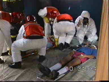 L'equipe medico-infermieristica dell'Ospedale Buccheri La Ferla all'interno della tenda di decontaminazione assiste gli intossicati