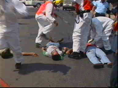 L'equipe sanitaria dell'Ospedale Buccheri La Ferla di Palermo, giunta sul luogo del disastro, compie una prima valutazione delle condizioni cliniche degli intossicati