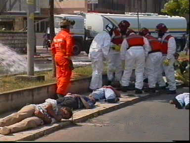 Nell'area contaminata tutti i componenti del soccorso (Vigili del Fuoco, Forze dell'Ordine, personale sanitario) sono protetti dagli effetti delle sostanze tossiche
